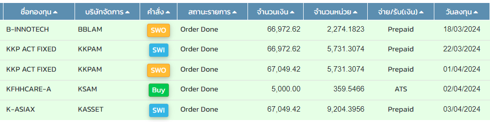 Action ที่ทำไปเมื่อเดือนมีนาคมนะครับ ลดสัดส่วน Tech เข้า Asia (K-ASIAX ใน VDO บอกผิดจำได้ว่าเป็น B-ASIA) แล้วเดือนนี้เติม Healthcare เข้าไป